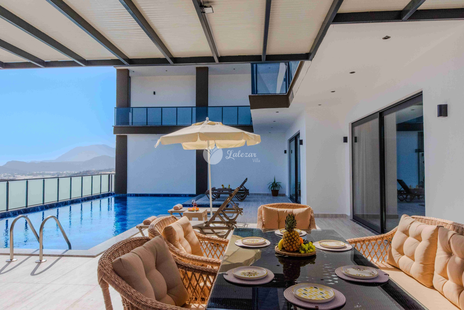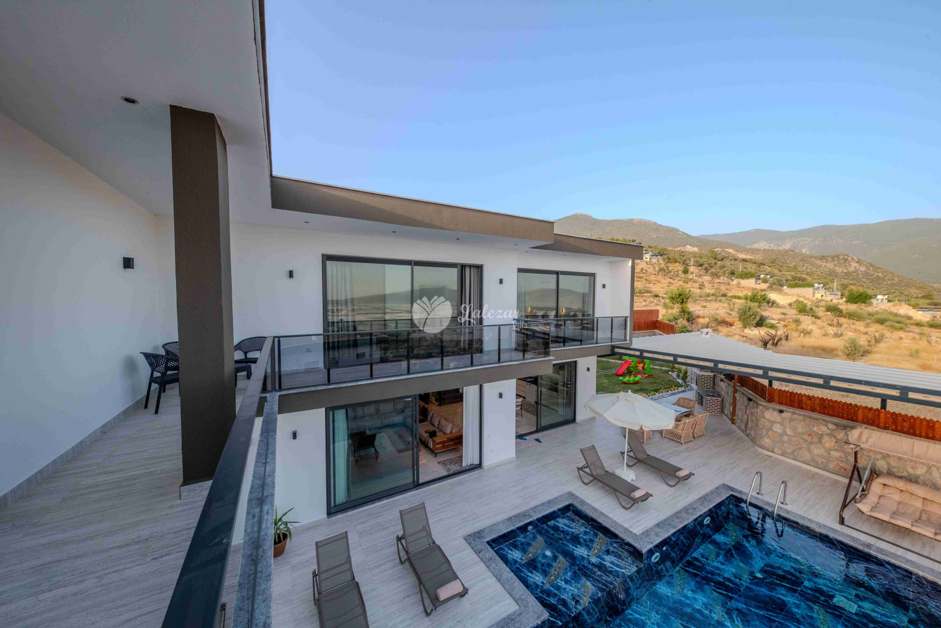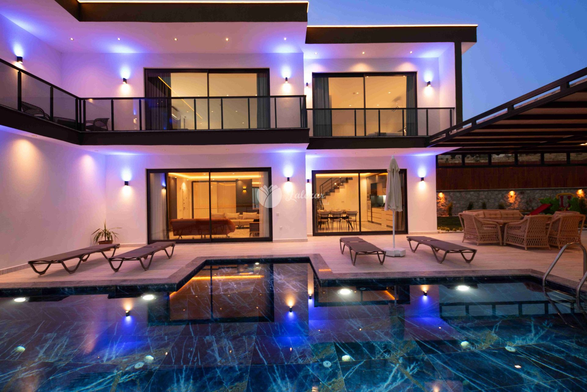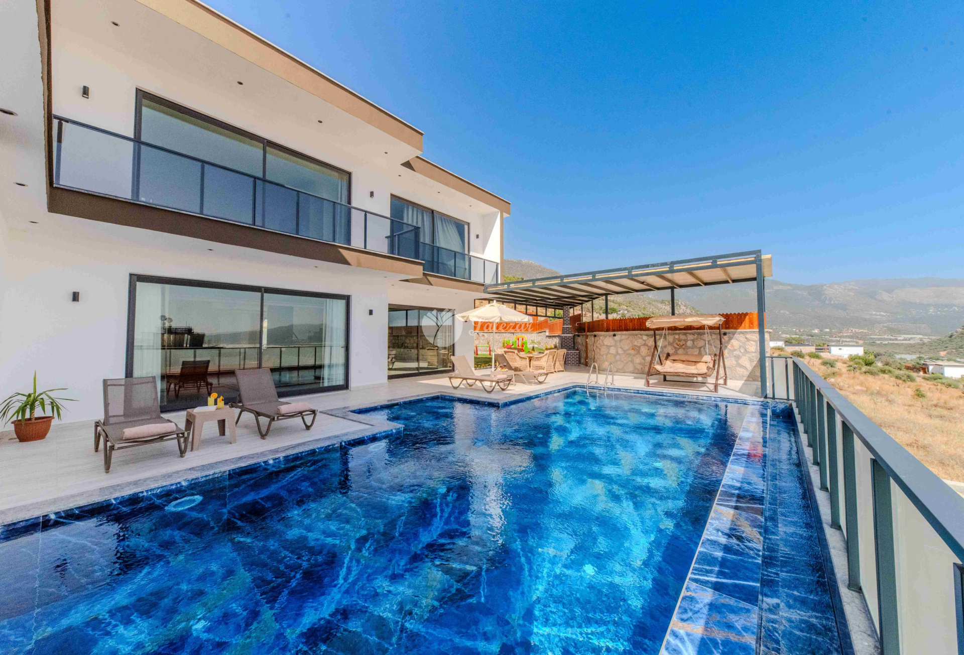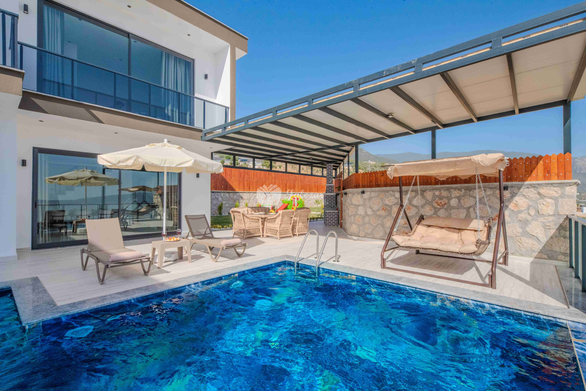 Villa Sahra 1, Kalkan Çavdır mevkiinde konumlanmış olan 5 kişilik dubleks lüks tatil villamızdır.