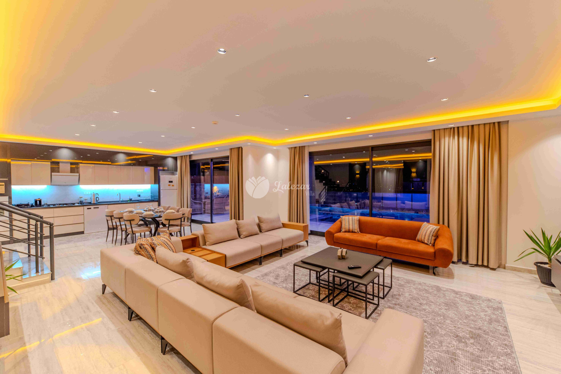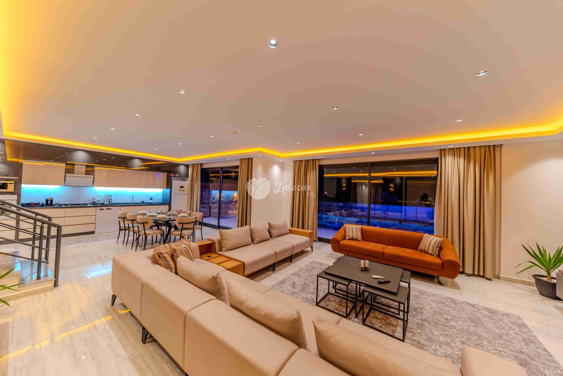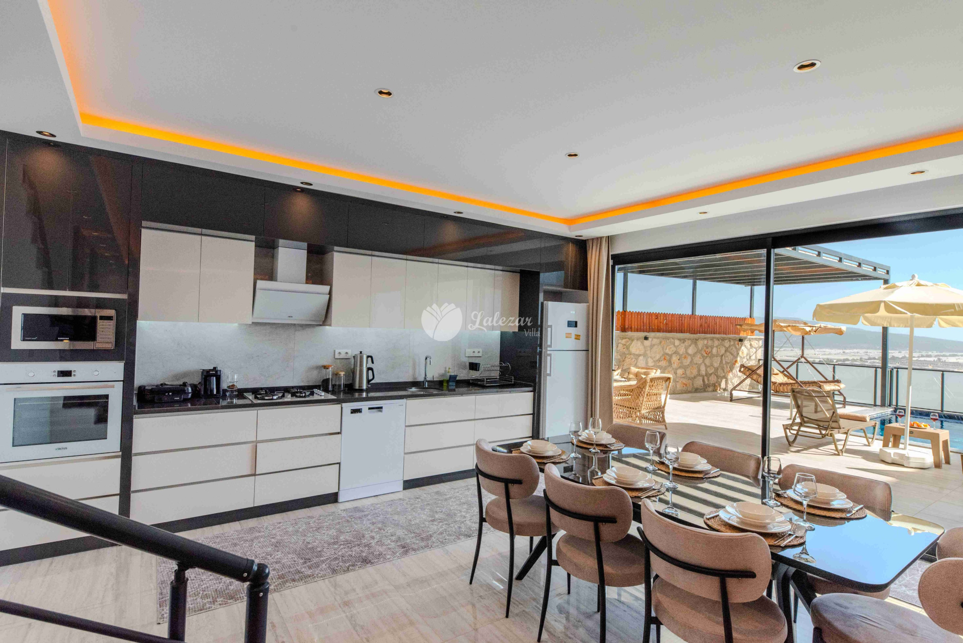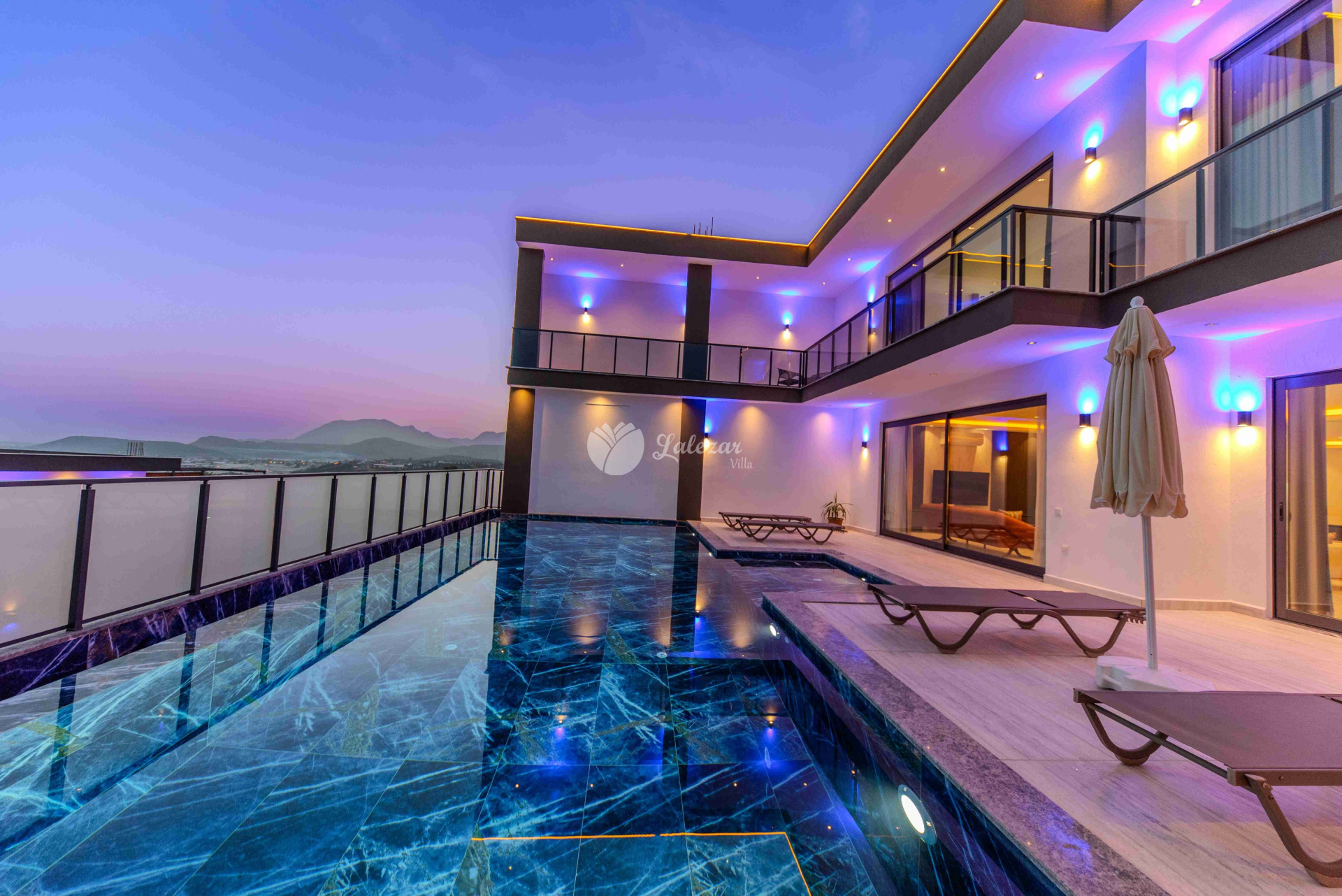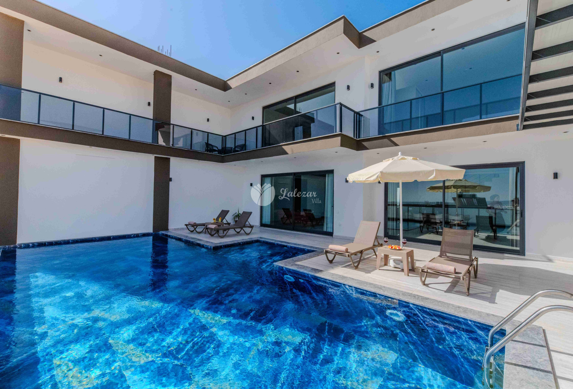 Villa Sahra 1, Kalkan Çavdır mevkiinde konumlanmış olan 5 kişilik dubleks lüks tatil villamızdır.